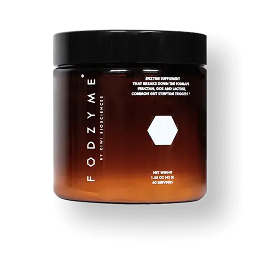 FODZYME®is a tasteless enzyme powder designed to break down FODMAPs (fructan, GOS, and lactose) in food to make meals more digestible. It's formulated specifically for people with FODMAP sensitivities.
